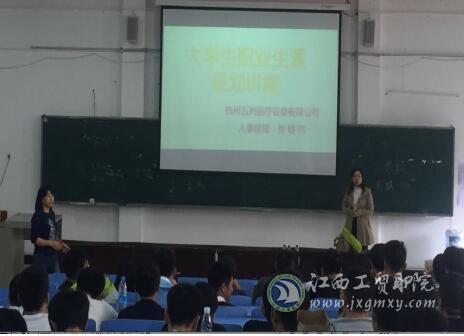 (经济贸易系 刘陈艳报道)为了帮助14级同学们对即将步入职场有较好的认知,引导他们科学、合理地规划自己的职业生涯,经济贸易系于2016年10月26日下午邀请五洲医疗设备有限公司人事部张明燕经理在一教113教室开展“大学生职业生涯规划”讲座,参加本次讲座的有刘陈艳老师及14级市场营销专业学生共计119人。