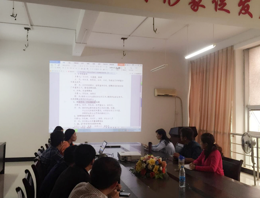 刘长万副主任(主持工作)首先传达了学院关于本次双选会以及顶岗实习工作会议的相关精神,要求各教研室、系就业干事积极与用人单位联系,认真做好会前各项准备工作;要求2017届毕业班辅导员近期开展一次毕业生应聘主题,提前指导学生注意应聘事项。