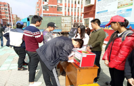 各班级通过在各班宣传、在食堂门口组织“为爱心消费”捐款活动。