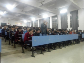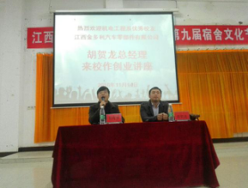 首先,胡贺龙总经理向同学们讲述了自己以前在机电工程系学习的情况,作为已经毕业多年的大师哥,回忆当年在机电工程系就读的场景依然记忆犹新;然后,胡经理激情澎湃得简述了自己的创业发展史,讲述了自己如何从一个普通的毕业生,经过自己多年的努力取得今天的成绩。他提到:现在的毕业生不缺创造力,缺的是激情以及吃苦耐劳的精神。并且向在座的同学提出了几个问题作为思考:大学生为什么要做职业规划?怎么做职业规划?如何实施职业规划?与此同时,也以一个创业者的身份忠告同学们,希望同学们认准了一个目标就要坚持,认为它是对的,就要持之以恒得做下去!