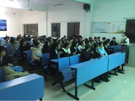 讲座过程中,殷总监生动的语言吸引着每一位同学,殷总监不吝惜和同学们分享她从业13年的经历。2003年的她,参加了学校组织的校园招聘,渴望得到一份实习工作,她准备了20份简历,向15家单位投递简历,收到5家单位的复试通知,并被2家企业同时录用,她从中挑选最适合自己发展的那家企业(东莞豪门大饭店酒店管理有限公司),成为一名实习生,她踏实肯干,兢兢业业,在实习期间,就得到部门领导的赏识,并得到很多的锻炼机会。