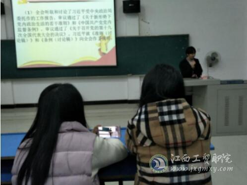 (经济贸易系 徐健报道)为了深入学习贯彻党的十八届六中全会精神,帮助经济贸易系学生入党积分子全面准确地理解和把握党的十八届六中全会精神,学习和掌握党的基本知识,2016年12月13日晚7:30 ,经济贸易系学生党支部在二教209开展了政治学习活动。参加本次活动的有50、51、52期党课班的学员。