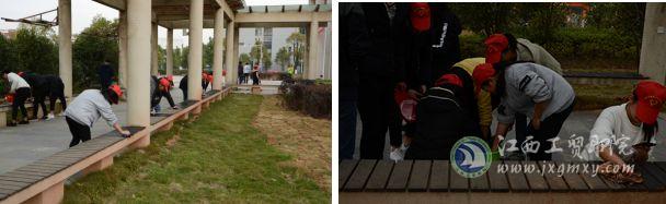 (建艺系 李肖瑾、林志引报道)为进一步美化校园环境,同时为了迎接建艺系12月22日的双创艺术节,建艺系党支部协同青年志愿者们在12月19日开展了“学校是我家,环境靠大家”的长廊凳子清洗公益活动。