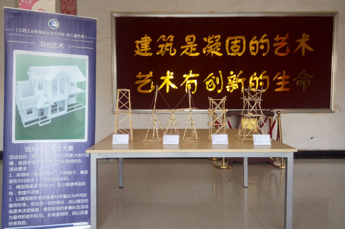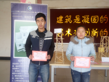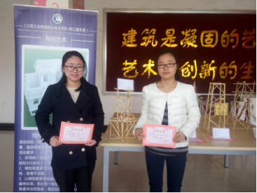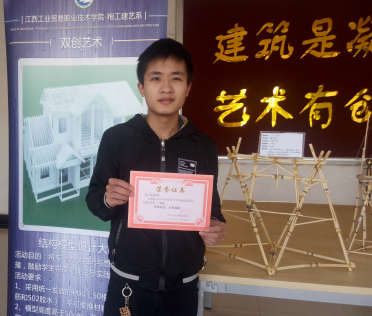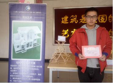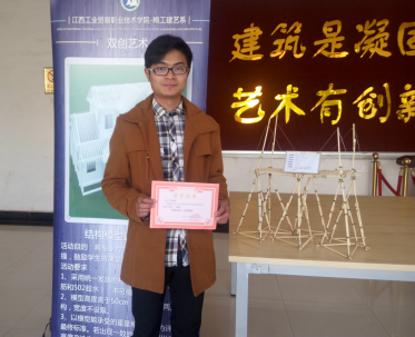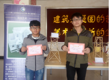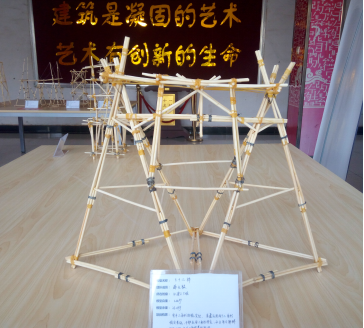 此次是为了鼓励学生将课堂理论与实践相结合,激发学生学习专业知识的积极性,提高对所学知识的综合运用能力,培养学生的创新精神以及团队意识,为建设领域培养业务素质高、实践能力强的复合型人才做基础的创新培养。该比赛要求学生以50根筷子、橡皮筋、502胶水和钢丝做出一个结构模型,模型高度应不低于50cm,至少搭建两层结构,宽度不设限。评比细则是以参赛结构模型能承受的重量和荷重比为评判的最终标准,如果出现所承受的重量和荷重比一样的情况,则以模型的高度来决定输赢。模型较高的参赛队伍活动为最终的胜利队伍。如高度相同,则以质量轻者取胜。最终评出获得本次比赛一、二、三等奖的创新作品。