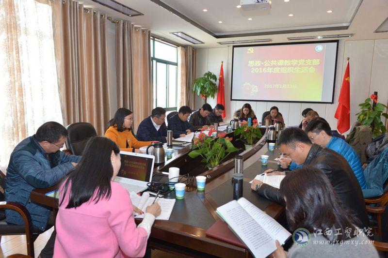 (公教部 钟林报道)按照学院党委办公室下发《关于在“两学一做”学习教育中召开专题组织生活会和开展民主评议党员的通知》有关要求,1月14日下午,思政·公共课教学党支部在行政楼317会议室召开2016年度组织生活会。学院党委书记、院长万玉青、学院党委办公室主任宋小兵出席会议。思政·公共课教学党支部书记黄凤芝主持并对支部工作进行汇报,支部全体党员参加了此次会议。