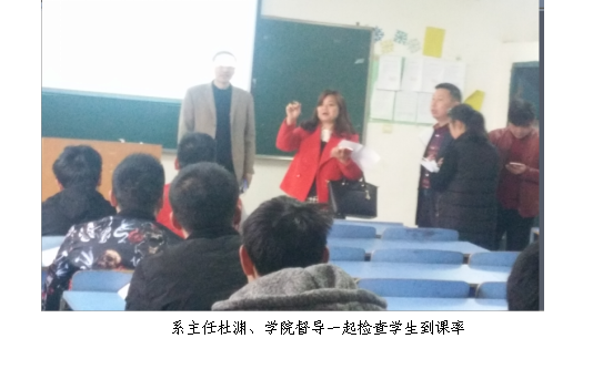 巡查过程对学生到课人数,无手机课堂实施,同学听课效果,教师新年第一课的教学准备等均作了详细了解并记录。检查过程来看,系部教学工作秩序井然,各班级任课教师、辅导员十分重视开学准备工作,各班平均到课率在98%以上,同学们新年返校后已转换角色,上课较认真。全系师生在新学期伊始展现了良好的精神风貌,以饱满热情投入教与学环境中。