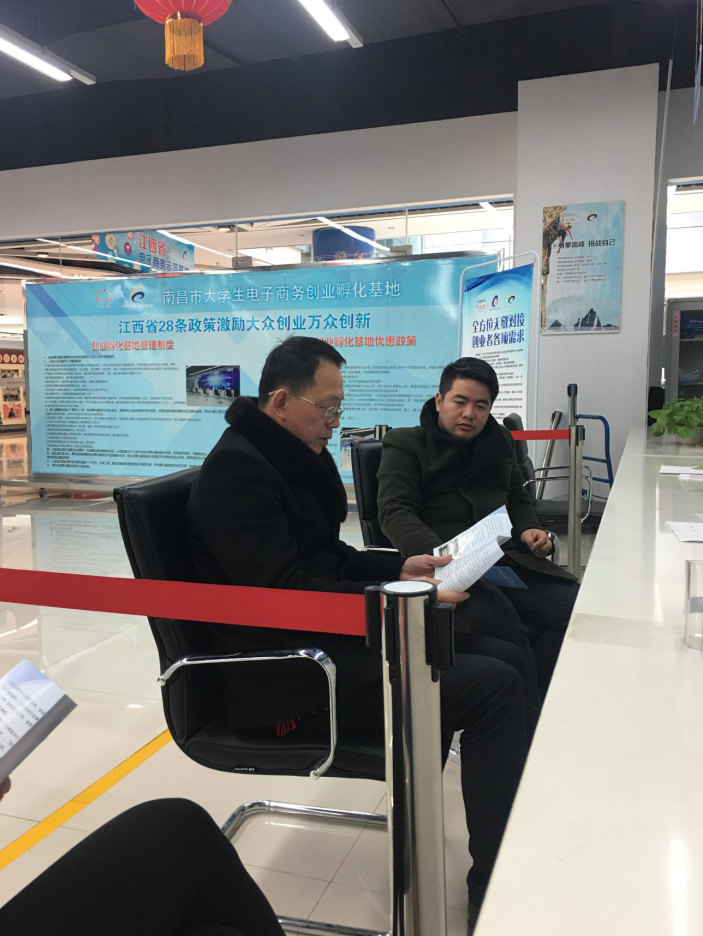 (建艺系 郭俊报道)为做好我系2017年创新创业工作,给学生提供更多的创业平台。2017年2月24日,我系何隆权主任、傅艳话副主任、建装教研室闵娟和谢凯老师、就业干事郭俊等一行5人,前往华南城南昌市大学生电子商务创业孵化基地进行实地考察。