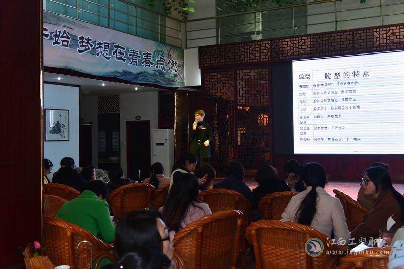 (工会办公室 报道)在3月8日国际妇女节来临之际,江西工业贸易职业技术学院组织开展了“妆点美丽 彰显魅力”的关爱女性主题活动,邀请南昌市妆典形象设计学院教师给女教职工开展形象设计,来自各个部门的女教职工3月7日下午齐聚学院文彦茶馆,一边品茶一边观看妆典形象设计学院教师讲解化妆技巧和现场化妆演练,许多女教师纷纷上台体验形象设计,效果颇佳。