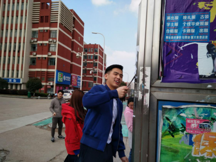 (经济贸易系 徐健报道)为了大力弘扬雷锋精神,彰显志愿风采,同时营造干净、整洁、文明、和谐的校园环境。3月14日中午,经济贸易系组织青年志愿者开展了清除校园小广告和清扫图书馆的活动。