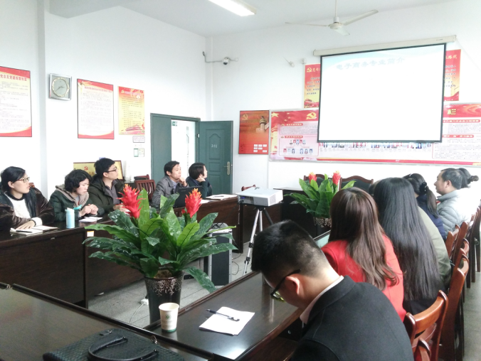 信息工程系教师一行8人抵达江西现代学院时,受到了商务学院领导和老师们的热烈欢迎。在商务学院会议室的座谈交流会上,商务学院院长助理程兆兆介绍了商务学院的发展概况,重点谈起了电子商务专业的发展历程、现状况以及未来的规划。