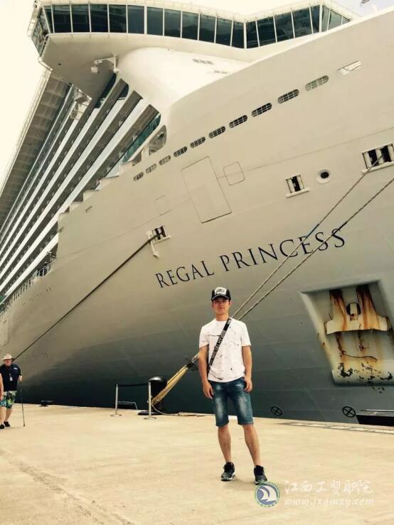 在他2016年完成学校课程,并参加海事培训,海员证书出来不久收到美国帝王公主的邀请函,环球航线。有几次凌晨两点总是要收到他的消息,早上打开我便开玩笑的开骂“这小子,出国了怎么就忘记礼貌了,不知道大洋彼岸的人需要睡觉吗。后来他回复说“刚上来,船上网有点贵,到港口可以蹭蹭网,给老师你发张照片。等我发工资了就不晚上骚扰你们啦”。谈及是否习惯时笑着说“平生第一次去了这么多国家,很兴奋。还感觉长胖了,因为船上的美食太多也不累,不知不觉就长胖了哈哈哈,可是还是想念中国的美食和人啊”简单的交流。言语间便透出已被邮轮深深吸引,不可自拔。