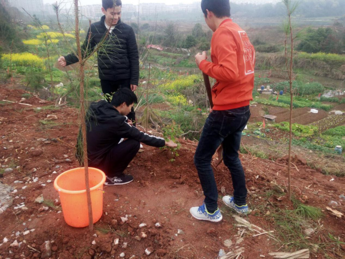 当日上午10点参加植树活动的20多名同学以寝室为单位开展活动。同学们对待此次活动都非常认真。植树节活动如火如荼的进行,大家不怕苦不怕累,室友之间相互协作,扶树苗、埋土、浇水……忙得热火朝天。很多同学第一次参加植树活动,再加上工具有限,虽然手掌被磨得发红,但他们从没有抱怨过。