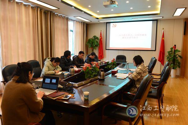 首先,学院党办宋小兵主任对江西水利职院的来宾致以热烈的欢迎;其次,党办副主任王苏就学院党建、宣传工作进行详细介绍。她指出,学院党委坚持以党建+工作为抓手,紧扣实际、创新载体,采取“四个新”的工作举措,积极寻求适应新常态下工贸学院的发展之路,积累了一些心得与经验,取得了一定的成果,有力地支撑起学院的党建工作。