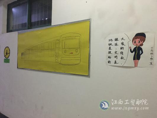 南昌地铁列车素描及温馨提示标语由15高职轨道2班学生完成