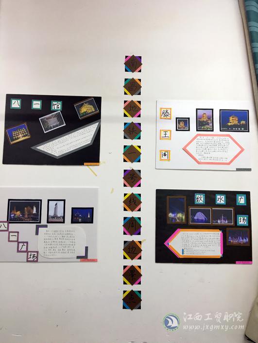 还有这……南昌地铁一号线周边景点,这是14五年制轨道班学生所做的墙面布置。