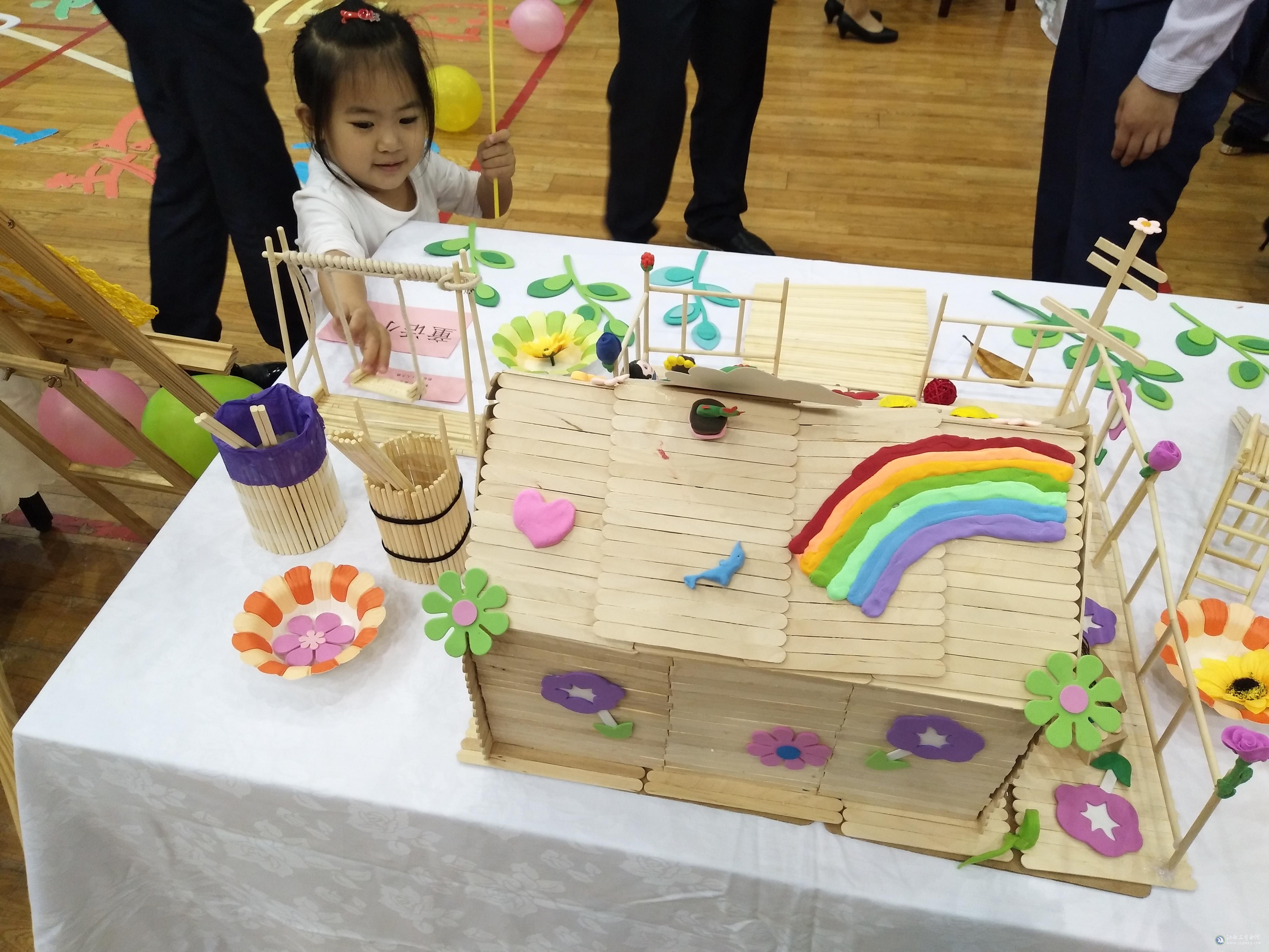 创艺宝贝决赛竞赛项目展示的成果有花枝招展的《花精灵》、无限清凉气息的《夏日么么茶》、满是童趣的《童话小镇》、充满少女情节的《粉色的梦》、还有甜甜蜜蜜的《糖果小屋》等系列项目,以及《鲜花盛开》、《童年记忆》、《玩偶之家》、《千秋之下》、《海的女儿》、《少女的婚纱》等众多充满创意的符合幼儿心理的玩具、娃娃、摆式等。