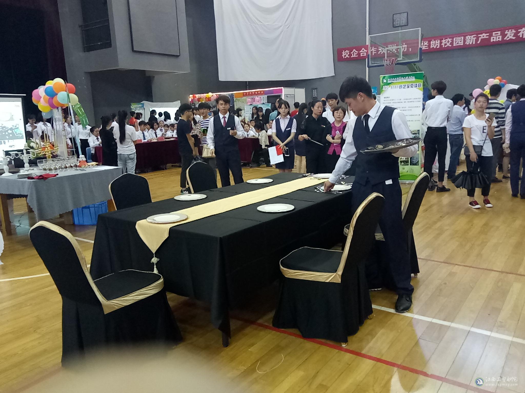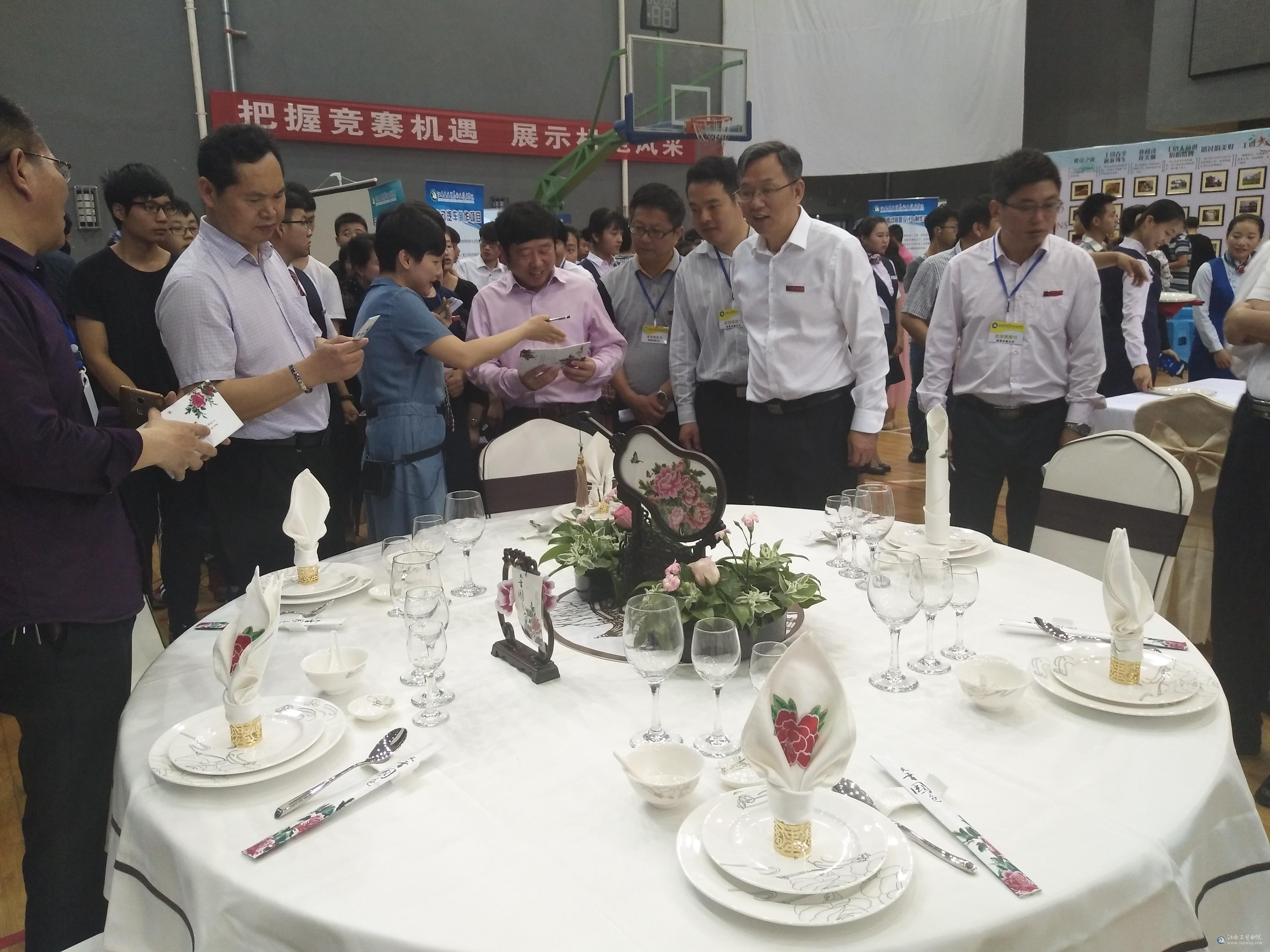 为提高学生中西餐主题宴会台面设计和创新等方面的知识,提升专业学生西餐宴会服务接待和菜单能力设计与制作等方面的技能,5月12日以西餐主题宴会台面设计和摆台为主线的决赛在体育馆正式拉开帷幕。此次比赛由旅游商务系餐旅教研室邹雪梅老师负责,还特别邀请了南昌瑞颐大酒店的两位企业代表担任评委,省粮食局及院领导也莅临了比赛现场。