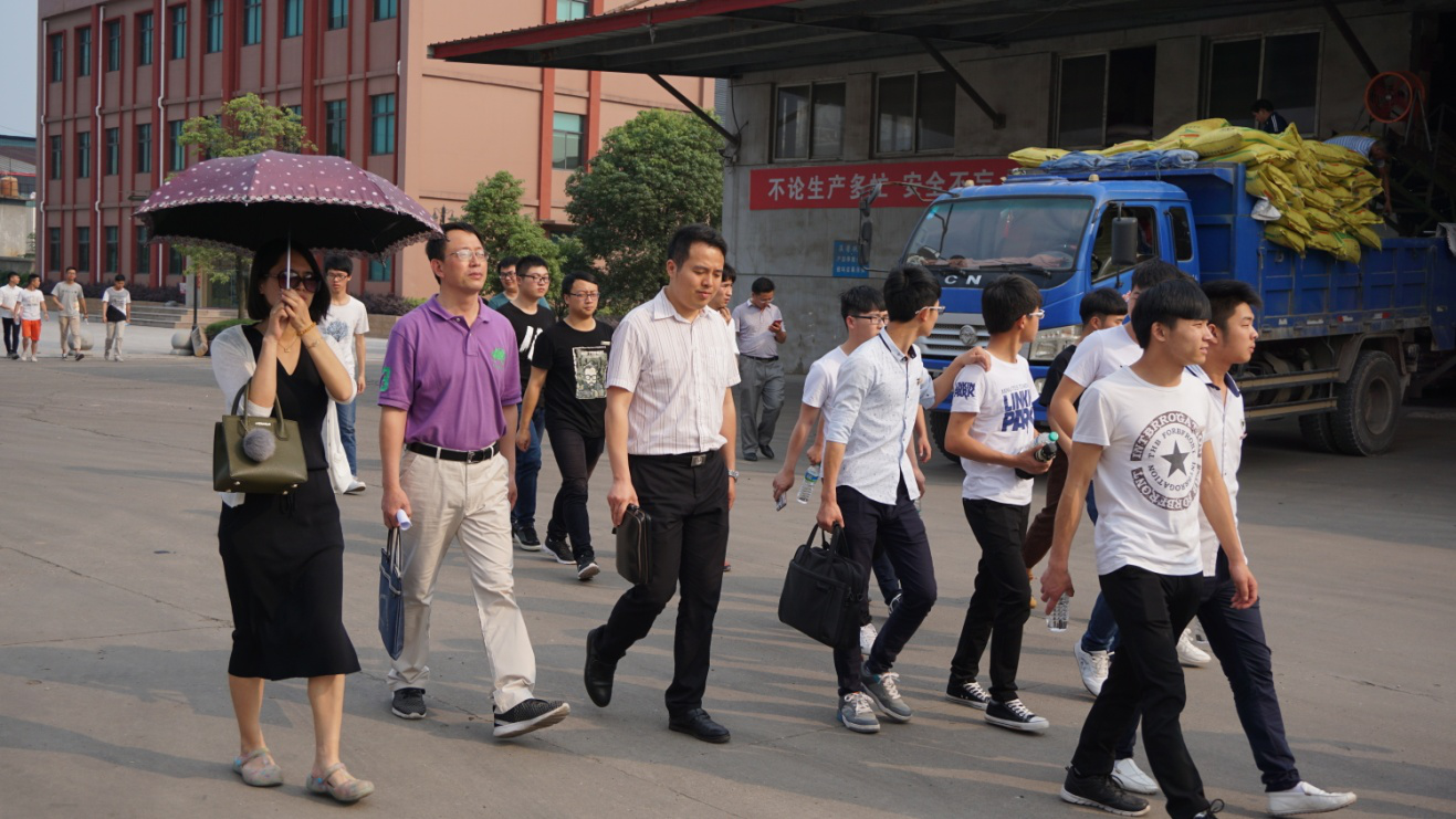 2017年5月17日,应华农恒青实业有限公司邀请,学院纪委书记万晓波、粮工建艺系主任何隆权、粮工系教学副主任涂宇胜、粮工建艺系副主任傅艳华等师生36人,参观走访华农恒青位于高安工业园的高安基地,此次考察受到华农恒青集团的高度重视。董事长李旭荣、总经理助理钟福儿、品管总监刘锦湖等企业高层全程陪同接待,先后参观企业的生产车间和检验品管。