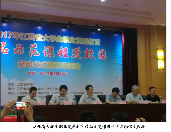 2017年江西省大学生职业发展教育精品示范课程进校园启动仪式暨首场活动于5月19日在江西财经大学信息管理中心学术报告厅举行。