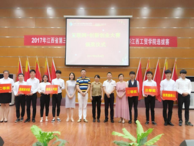 2017年6月3日-4日, 江西省第三届大学生“互联网+”创新创业大赛江西工业贸易职业技术学院选拔赛在学术报告厅举行, 本次大赛是在全院范围内共遴选出了70个项目进行评比,其中粮工建艺系17个项目,比赛采用5+3模式进行,即5分钟的项目介绍和3分钟的评委提问。