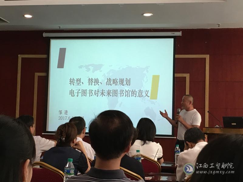 2017年6月22日,图书馆派出周中民等两位老师参加了江西省图工委举办的主题论坛活动,此次活动在江西师范大学瑶湖校区白鹿会馆举行,共有来自省内高职和本科院校的50余所图书馆的代表参加。