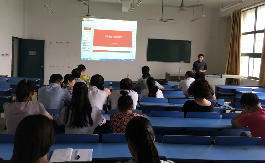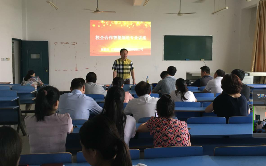 为更好地推进校企合作力度,依托企业行业的优势,更新教学理念,建立深度校企合作、优势互补、共同发展的合作机制。机电工程系于2017年6月30日 在第三专业楼408室邀请江西明匠智能系统有限公司研发部陈敬兵经理举办智能制造专业讲座,机电工程系全体职工到场听取报告并与陈经理交流。