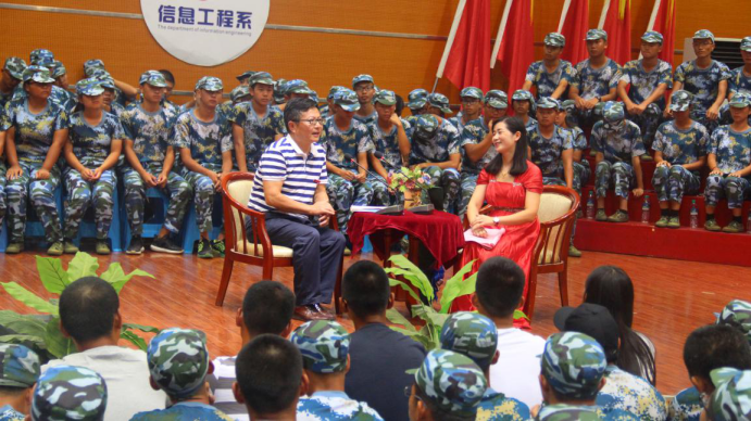 视频《期盼》播放了2017级家长的一封家书、系领导及学长对2017级新生的寄语。刘国梁同学父母写给他的这封家书,蕴含了父母对子女远行的思念与期盼,令在场所有人为之动容。在信中他们嘱咐孩子一定要谨记“成才先成人”,在大学中能多交朋友,多与老师沟通,学好本领,做一个对社会有用的人。系主任刘长万副教授在视频中对2017级新生的到来表示欢迎,希望他们能在信息工程系快乐学习、快乐生活。