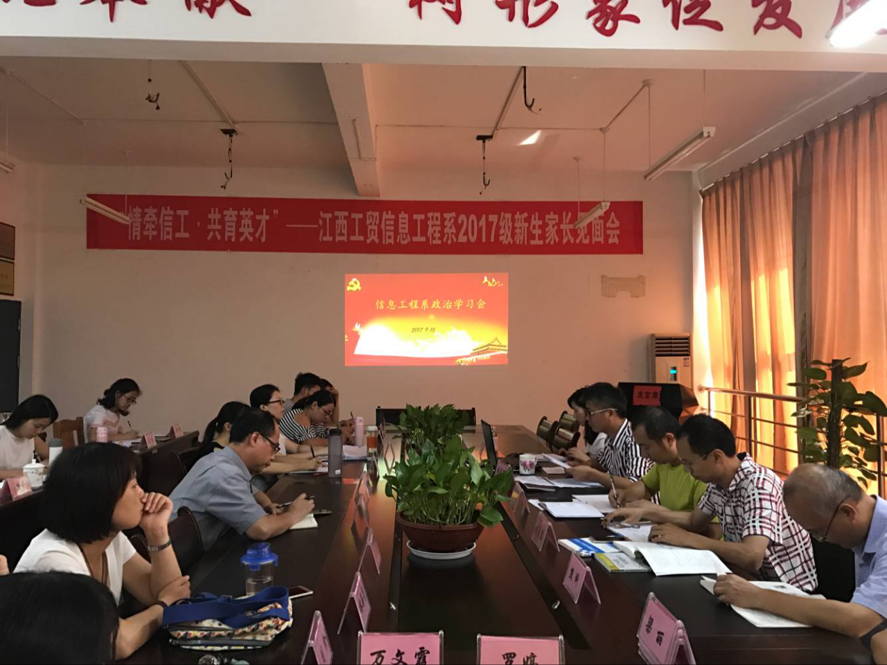 为全面贯彻落实学院思想政治工作会议精神,9月15日下午,信息工程系在二专315会议室召开了本学期第一次政治学习会议。会议由刘长万书记主持,会议主要分为两个议程:一、传达学院第十一届思想政治工作研讨会文件精神;二、重温《关于进一步加强学院师德师风建设的通知》、《高校教师禁行行为红七条》以及“好老师”的四条标准。