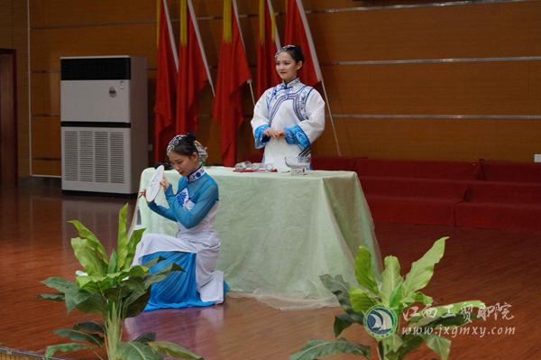 此次活动中还为2017级新生班级辅导员助理颁发聘书,表彰了25名在新生接待活动中表现优异的“优秀志愿者”并为我系9名军训教官颁发“特别能吃苦·特别能战斗”奖杯。在“铸班魂·唱红歌”活动中,6个新生班级用《我的中国心》、《军港之夜》、《国家》等曲目表达对祖国的热爱,他们的歌声像潮水般地奔腾而出,慷慨激昂的旋律回响在学术报告厅的上空;此次活动最大的亮点就是有旅游商务系优秀学子给2017级萌新的分享,助理辅导员代表万宇翔、优秀志愿者代表钟金平、优秀毕业生代表王娜都用自己的亲生经历及真挚感情给新生同学们讲述着自己与旅游商务系的点点滴滴,感动了在场的每一位商舟学子;刚刚从北京外交部“全球推介会”接待回来的李雪婷、彭璟慧、程颖则分享了他们在北京“全球推介会”上接待的点滴以及连续三年参加全国中餐主题宴会设计竞赛获奖的心路历程;还有受邀参加2017年阿斯塔纳世博会的吴帆和邓青给2017级萌新们带来了一场茶艺表演的视觉盛宴;而新生代表熊昊则讲述了自己和同学们在学校军训的欢乐时光,并对自己未来三年提出规划,他也邀请在场每一位新生像他一样,对自己的未来提出规划。最后,此次旅游商务系2017级新生“开学第一课”在嘹亮的校歌中落下帷幕。