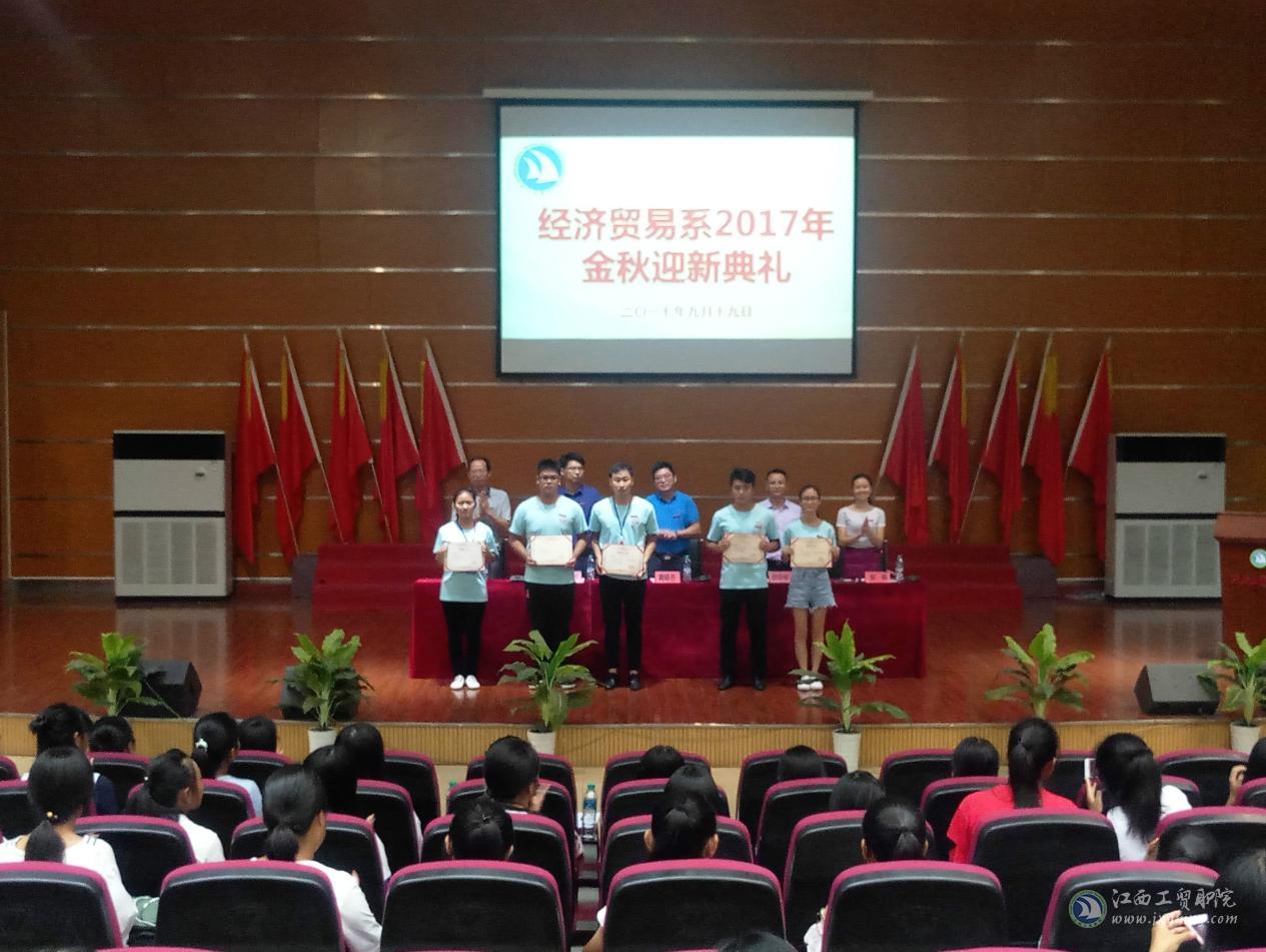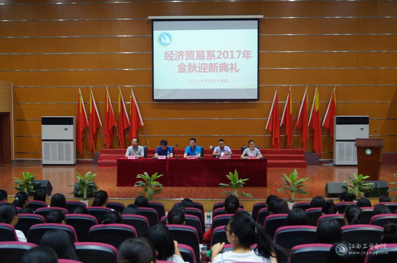金秋圆梦,九月欢歌。2017年9月19日下午,经济贸易系2017年金秋迎新典礼在学院图书馆学术报告厅隆重举行。学院党委委员、副院长周晓邑,武装部·学工处处长李尊华,南昌国峰健康管理有限公司人力资源部总监胡荣峰出席了典礼;经济贸易系主任李运楼和刚入职的8位新教师、2017级全体新生及全体新生班级辅导员参加了典礼。典礼由系副主任何静主持。