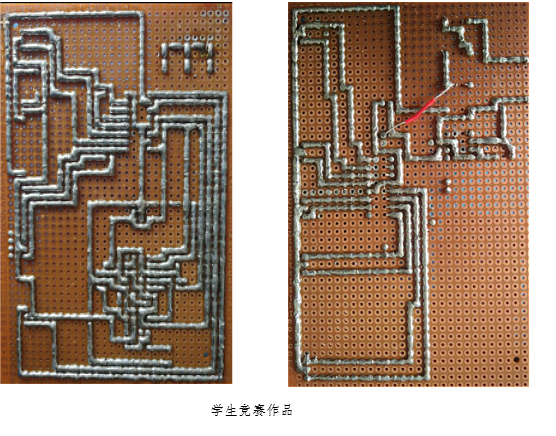 本次大赛以2017级新生为竞赛对象,要求在规定时间内,利用4017、555芯片及外围元件完成流水灯(也称“跑马灯”)制作。主要考察学生焊接、电路制作、元器件检测等功底,是一项提升学生基本技能的赛事。通过4小时的竞赛,参赛选手完成竞赛,提交作品。