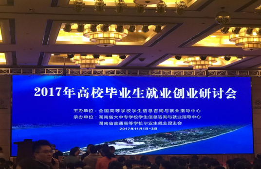 2017年11月2日,2017年高校毕业生就业创业研讨会在湖南长沙召开。会议由教育部全国高等学校学生信息咨询与就业指导中心主办,湖南省大中专学校学生信息咨询与就业指导中心、湖南省普通高等学校毕业生就业促进会承办。会议旨在进一步推动高校毕业生就业创业指导服务工作发展,实现战线联合联动、交流研讨,提升高校就业创业指导教师专业化水平。教育部高校学生司副司长马春晖,教育部高等教育司副司长范海林,高校学生司就业处处长王林等教育部有关领导,湖南省教育厅党组成员、副厅长、工委委员葛建中出席了本次活动。全国高等学校学生信息咨询与就业指导中心副主任宁小华主持开幕式。江西工业贸易职业技术学院就业处处长文莹作为代表参加了此次研讨会。