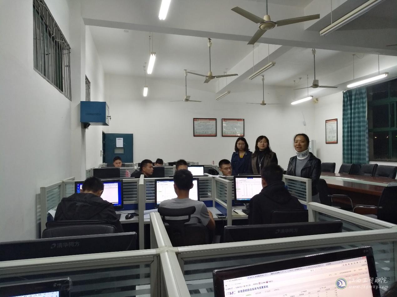 为更好地落实省赛培训工作,取得最佳的培训效果, 2017年11月6日晚,经济贸易系副主任陶晓峰、会计教研室主任胡越君和会计专职教师黄文一行前往一专204室、407室督战会计专业、市场营销专业学生省赛培训情况。