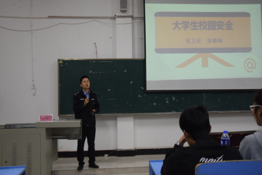 2017年11月12日晚,保卫处负责人邬啸峰同志为2016级、2017级各班学生综治信息员开展了一堂《大学生校园安全》主题讲座。全院共113个班级学生综治信息员参加。