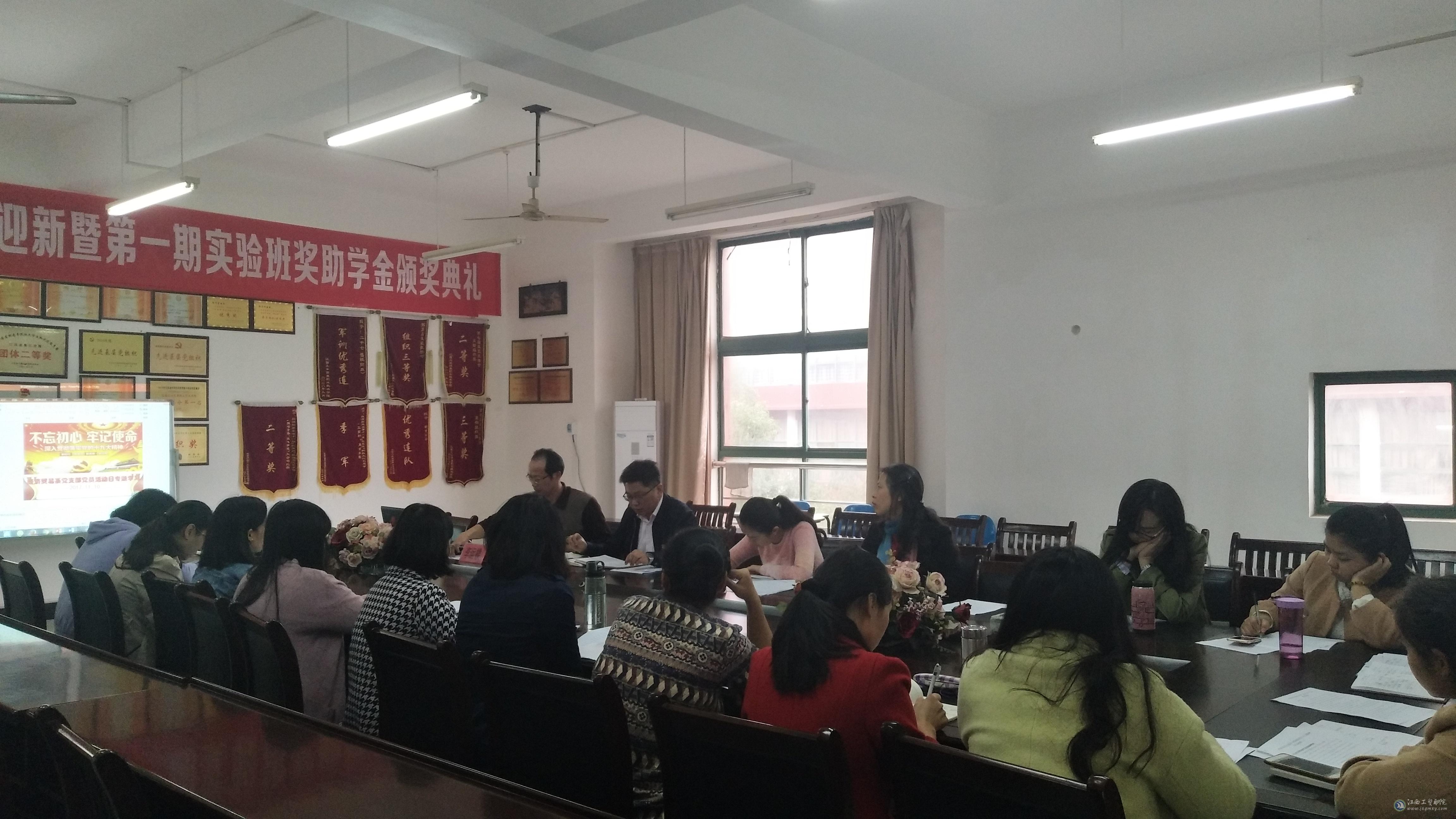 为全面贯彻落实党的十九大精神,切实将党的十九大精神转化为推动教育事业发展的强大动力。11月10日下午,经济贸易系党支部在一专320会议室召开党的十九大精神专题学习会,学院党委委员、副院长周晓邑,经济贸易系党支部书记、主任李运楼,党支部副书记、副主任何静以及全系党员教师参加了本次专题学习会。