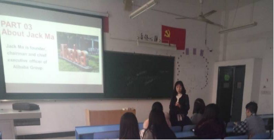 活动以马云先生的演讲视频开始,演讲中马云先生提及他的创业理念,创业经历,以及双十一购物节的创建过程。马云先生的英语非常棒,这样的开场特别吸引了同学们的兴趣并激发他们的热情!