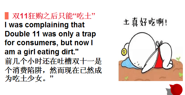 “学以致用”环节,每位同学用英语表达自己在双十一的消费金额以及收货了哪些战利品!师生们一起分享当下最时新的网络购物词汇Popular Expressions about online shopping。比如血拼;用户评论---好评、中评、差评;刷单;7天无理由退货;连环退货族;吃土等。