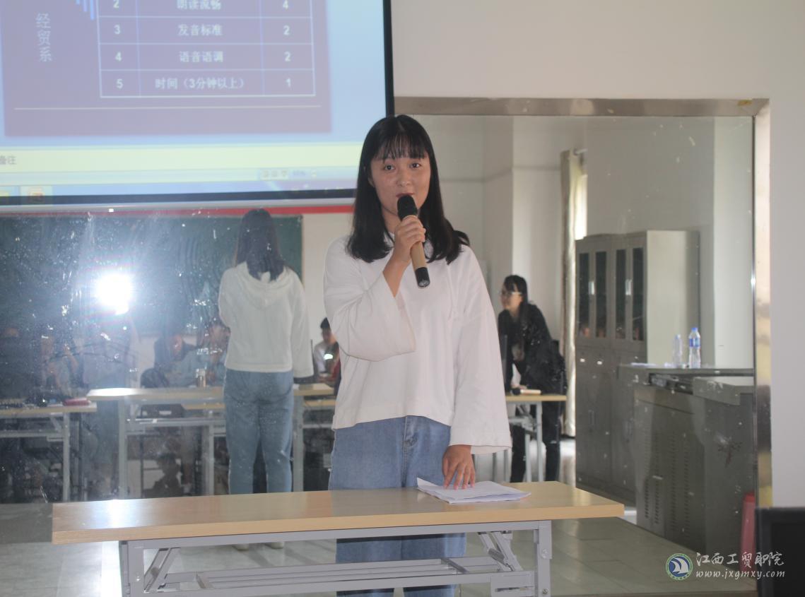 为进一步提高学生学习英语的热情,增强学生的英语表达能力,营造良好的英语学习氛围,丰富校园文化生活,我系BEC创客空间于2018年4月25日下午2:00—3:40在芳泽楼408开展了创客思维美文阅读、分享活动。经贸系副主任陶晓峰、商贸教研室主任尹姗及商贸教研室王芳老师担任评委,国际经济与贸易专业班级学生参加。