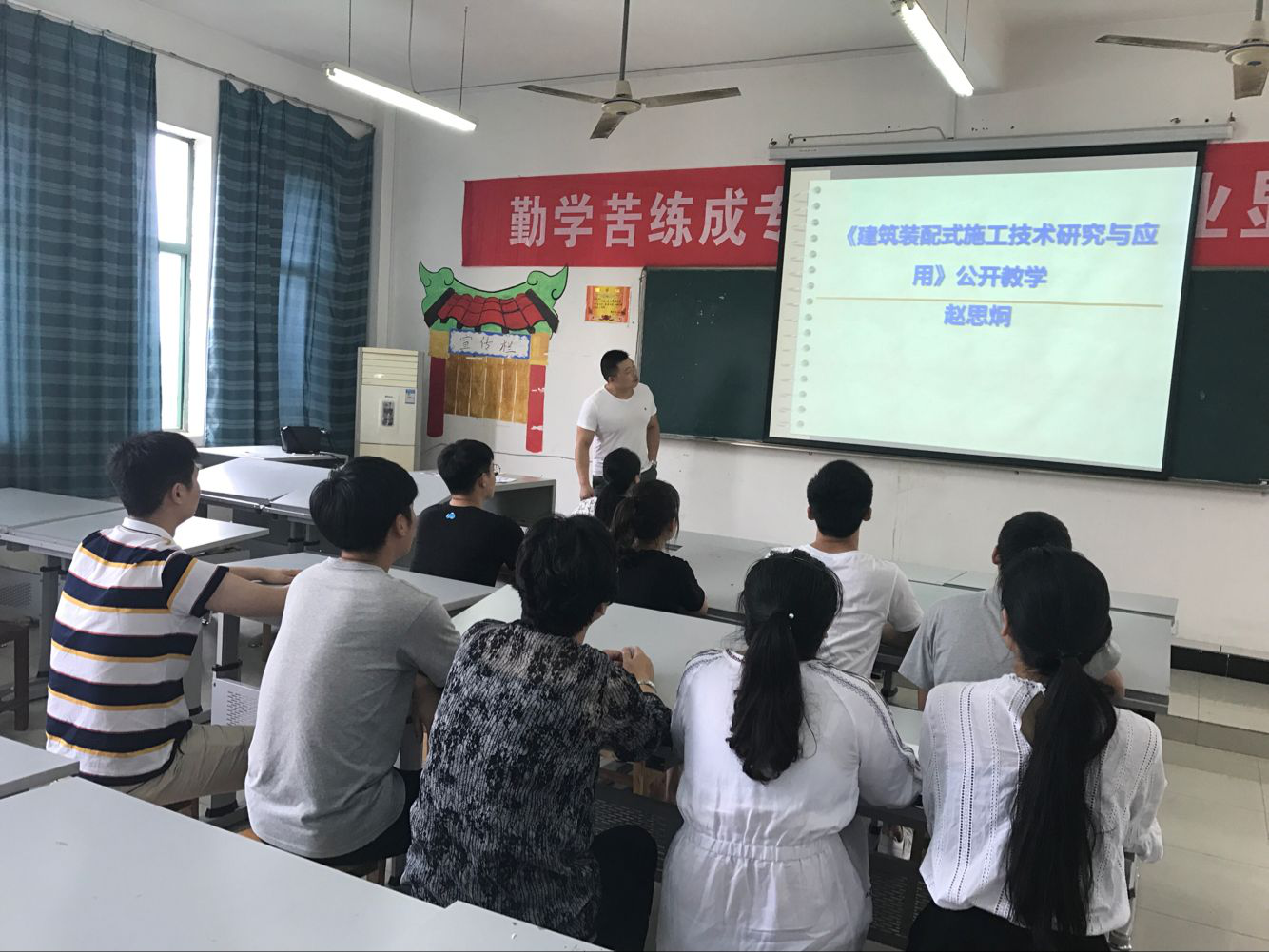 为了顺应建筑工程技术日益蓬勃的发展趋势,强化专业教师的专业水平和业务能录,建筑与艺术系于2018年6月8日14:20在厚泽楼401教室举办了“建筑装配式施工技术研究与应用”公开教学。此次公开教学主要针对装配式施工技术的难点和要点,装配式施工新技术应用进行教学。