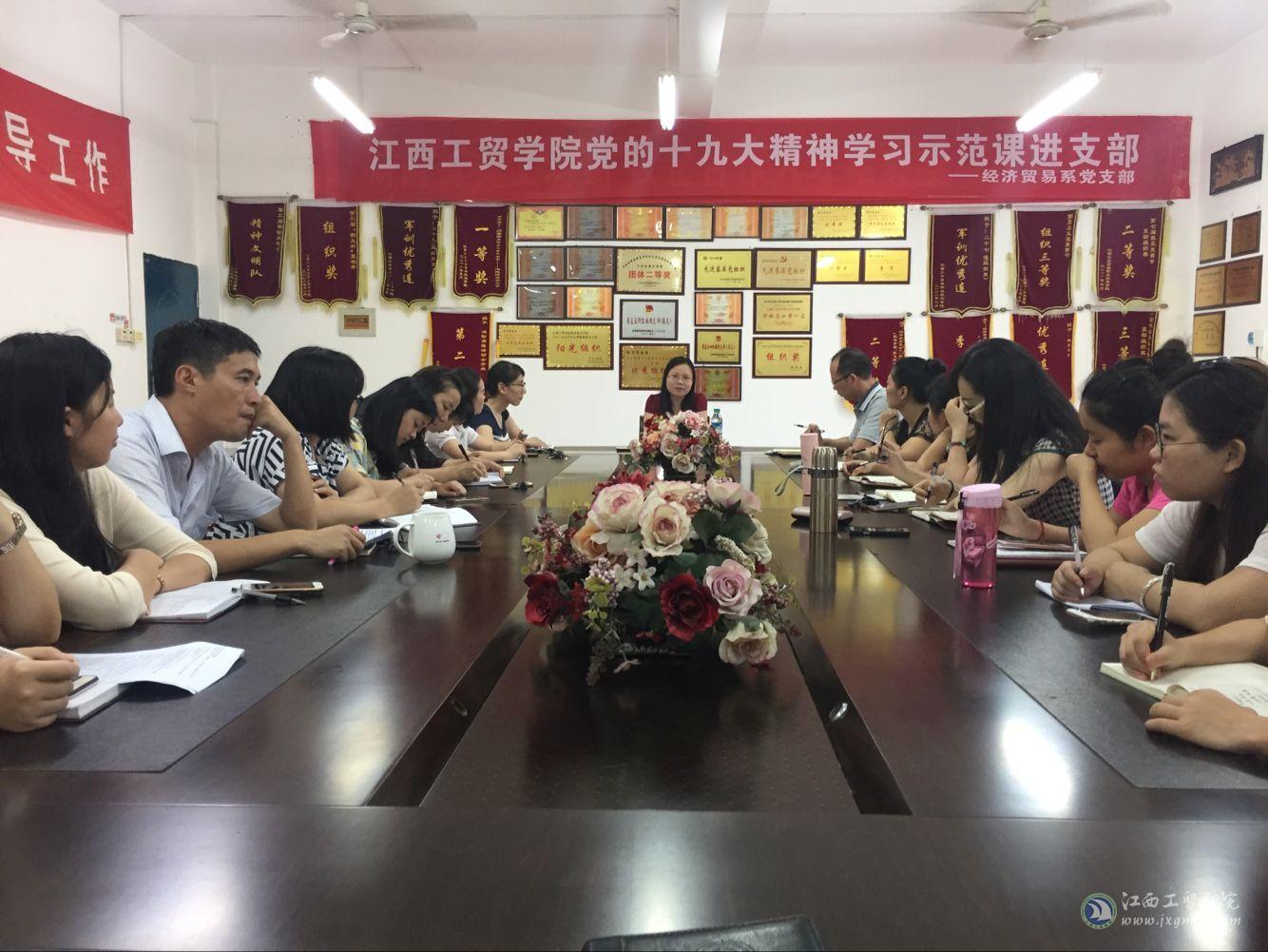 为了深入学习和贯彻党的十九大精神,加强学习型党支部建设,树立党课课堂标杆,根据学院党建工作总体安排,6月20日上午,思政公教部党支部书记黄凤芝在芳泽楼320室为经济贸易系全体党员主讲了一场题为《新时代:准确理解我国社会主要矛盾新变化》的示范党课。