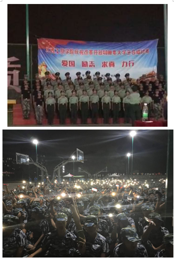 军歌嘹亮,唱出强国强军好声音;军歌嘹亮,唱出改革开放新征程, 9月21日6时许,全院3000余名新生齐聚大型篮球场,为庆祝改革开放40周年尽情欢唱,欢唱40年改革开放以来祖国的发展腾飞、天地新颜。