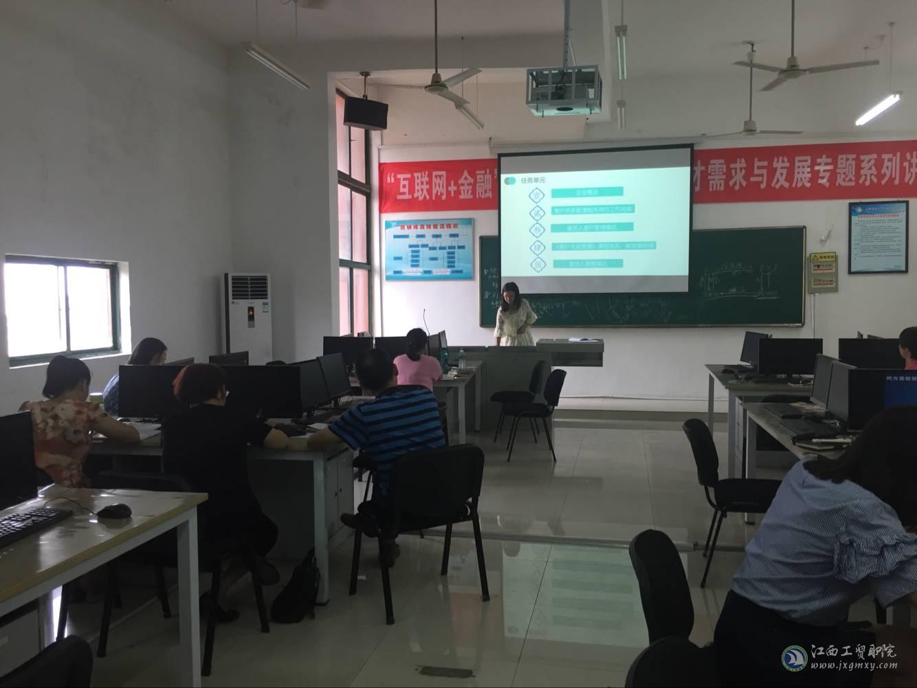 张金连教师于2018年上半年先后在垦荒人集团绿色食品连锁、南昌呱呱亮涂料有限公司2家企业挂职。围绕挂职锻炼工作任务,包括调研所在企业的各具体岗位信息、研究挂职岗位及其职责与能力要求、了解企业工作岗位流程及相关制度、提供岗位对应工作过程中的工作案例,张金连教师从企业概况、企业岗位设置、销售岗及网络推广客服岗岗位职责、企业销售流程及客户管理模式、客户关系管理相关岗位典型工作任务、《客户关系管理》课程内容体系梳理及工作案例搜索等内容展开挂职锻炼汇报。