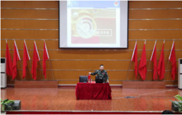 喻参谋从基本消防安全制度入手,首先简要介绍相关法律法规,旨在使大家形成基本消防观念。而后,结合实际案例,并配上一幅幅触目惊心的图片、一段段发人深省的视频,生动的讲解了消防安全知识。