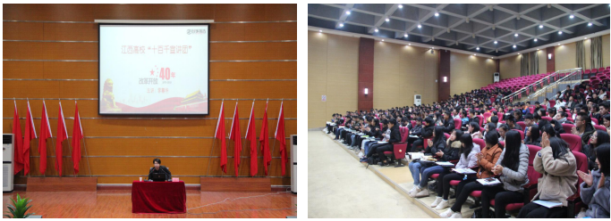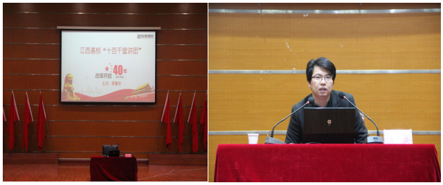 为庆祝改革开放40周年,推动习近平新时代中国特色社会主义思想深入人心、落地生根,12月10日晚6:30,江西工贸学院学工处处长·武装部部长李尊华老师应邀来我系作庆祝改革开放40周年宣讲报告。报告会在图书馆学术报告厅举行,信息工程系副主任马龙凤主持宣讲报告会,2018级学生聆听了报告。