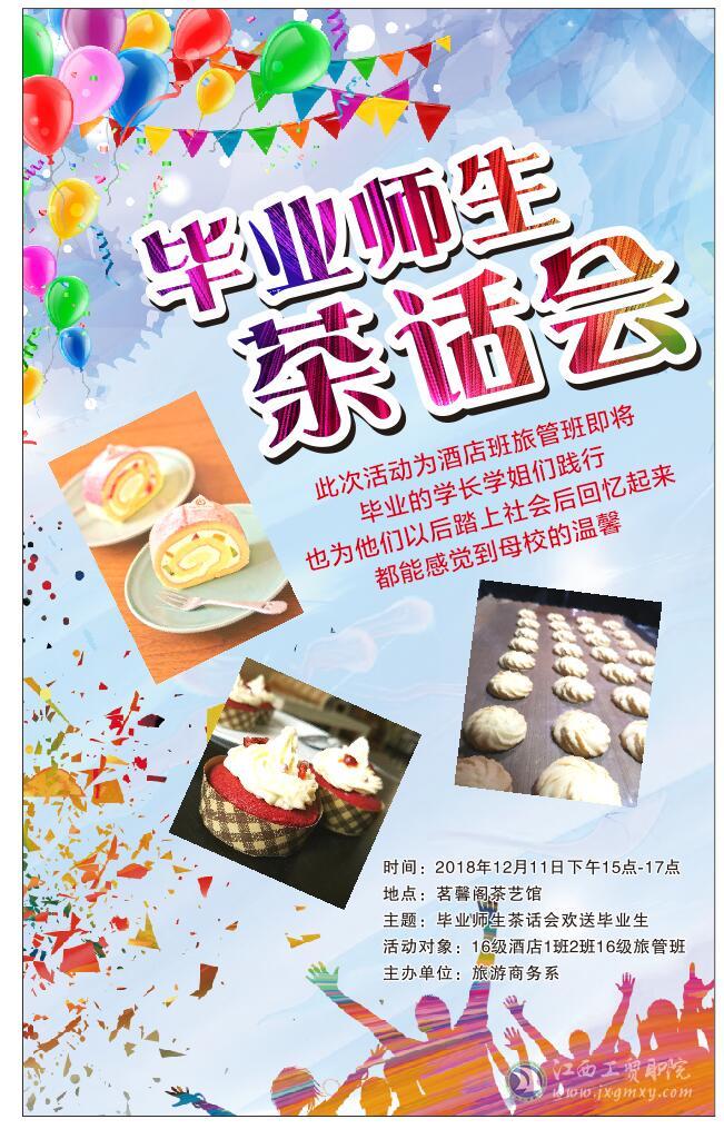 光阴荏苒,岁月如梭。转眼又到了毕业季。在12月11号下午我们终于迎来了16级酒店管理专业和旅游管理专业毕业师生茶话会,活动所在地点为茗馨阁,活动中,大家兴致昂扬,本次活动旨在为16级学长学姐们即将离开的大学生活留下更多美好的印记。