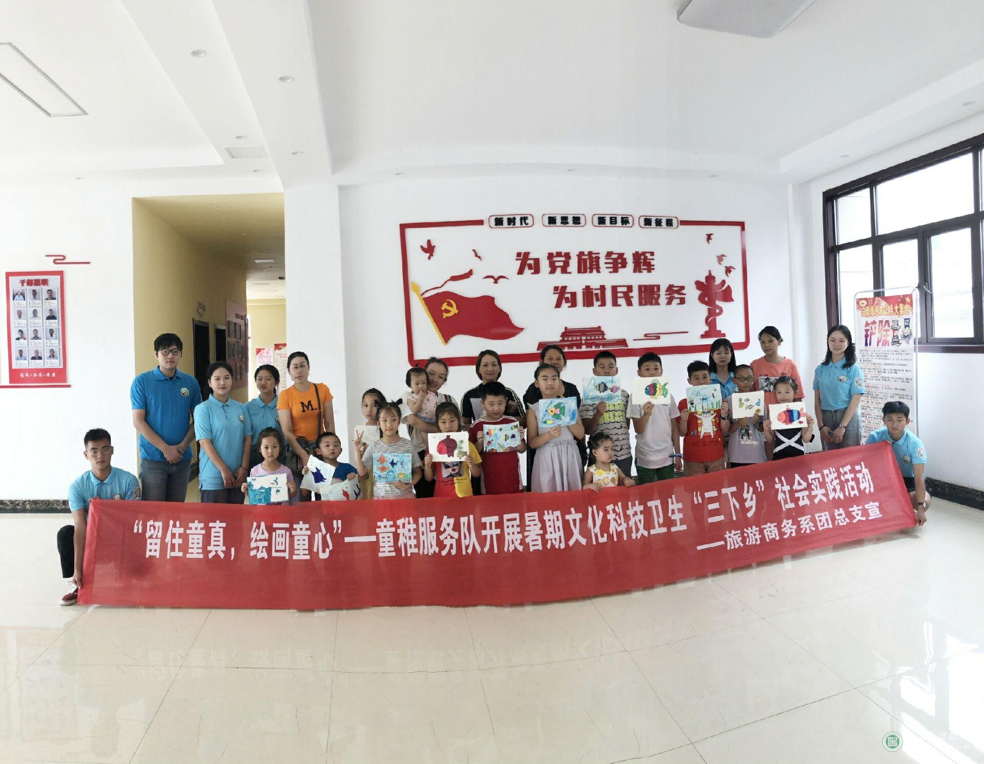 为深入学习贯彻习近平新时代中国特色社会主义思想,学习贯彻党的十九大和十九届二中、三中全会精神,引领广大青年学生在实践中受教育、长才干、做贡献,勇做担当民族复兴大任的时代新人,为新中国七十华诞献礼,以实际行动投身打赢脱贫攻坚战,投身乡村振兴战略实施,为决胜全面建成小康社会,建设富裕美丽幸福现代化江西凝聚青春力量。在7月20日至21日,旅游商务系“童稚”社会实践服务队来到了南昌市青山湖区张燕村居民委员会开展了一场可爱的暑期文化科技卫生“三下乡”社会实践活动!