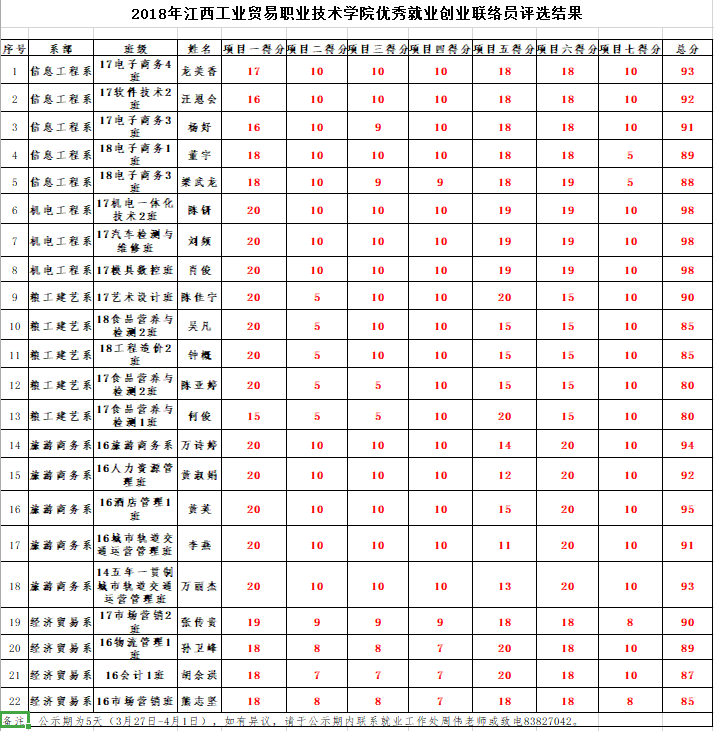 公示:江西工业贸易职业技术学院2018年度优秀就业创业联络员的评选结果