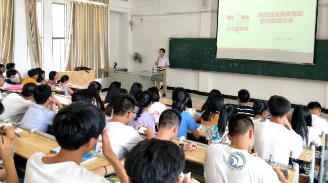 为提升广大学生对金融创新前沿知识的认知度,增加学生对就业前景的认知,6月15日,经济贸易系特邀请江西联合互联网金融信息服务有限公司业务总监刘炎为2017、2018级金融管理专业学生举行了以“供应链接金融发展趋势与实践分享”的专题讲座。