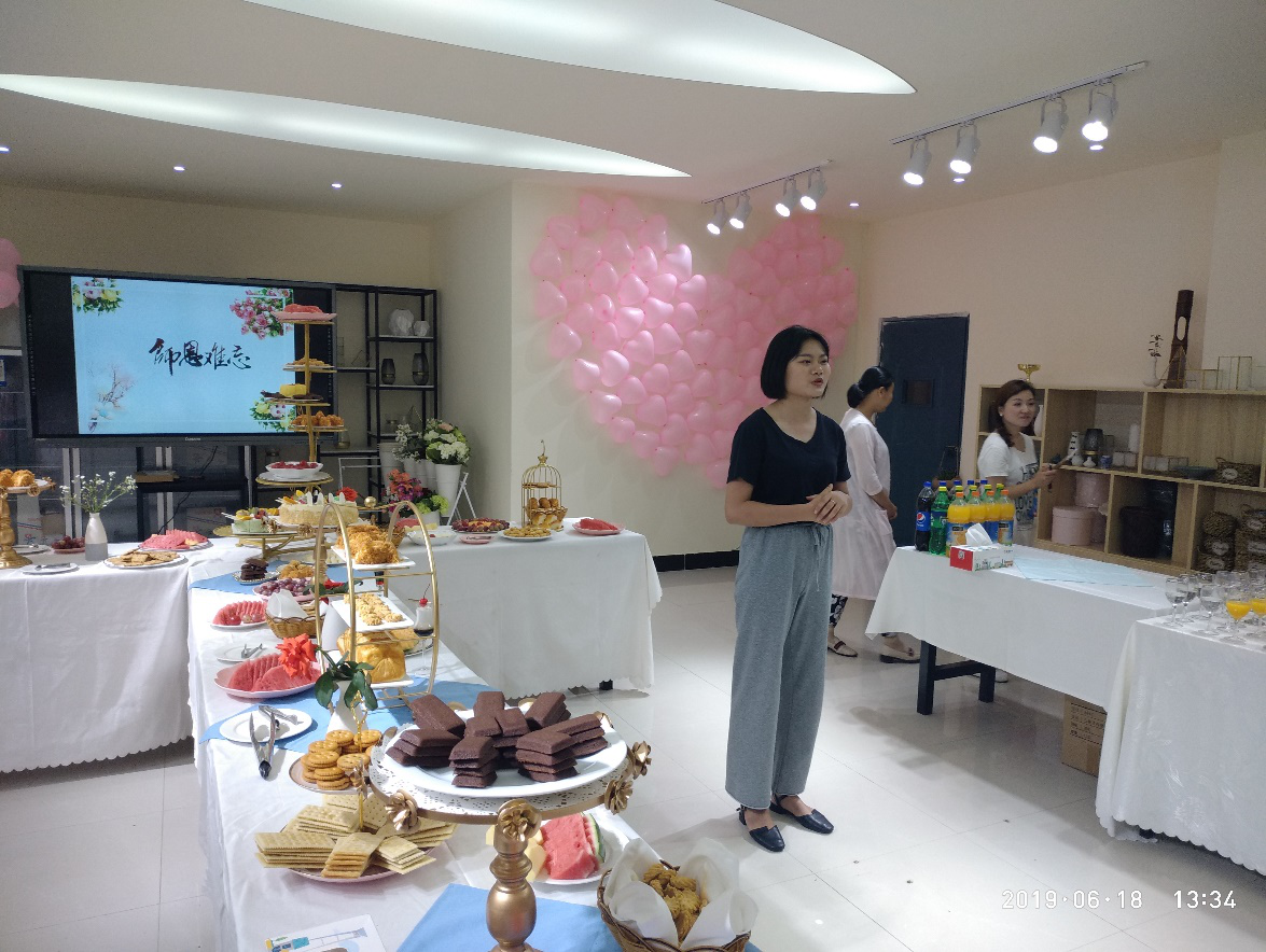 因此,旅游商务系餐旅教研室创客空间项目之“LULU策划帮”受2016级酒店管理专业毕业生的委托,组织和策划实施了这次感恩教师的冷餐酒会,此次活动于2019年6月18日13.00在芳泽楼102花艺实训室举行。