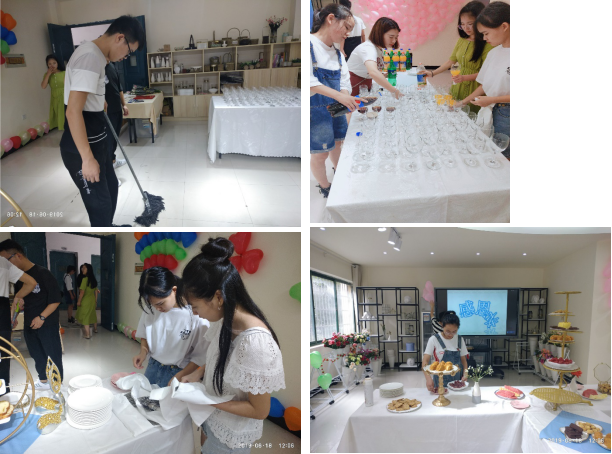 最后让我们近距离来看一下老师和同学们这次宴会活动现场的准备和布置工作吧。